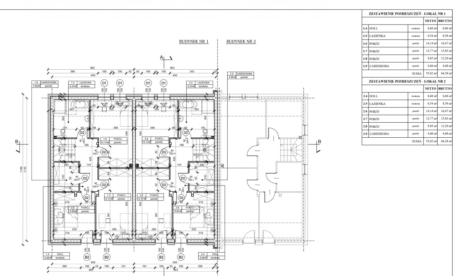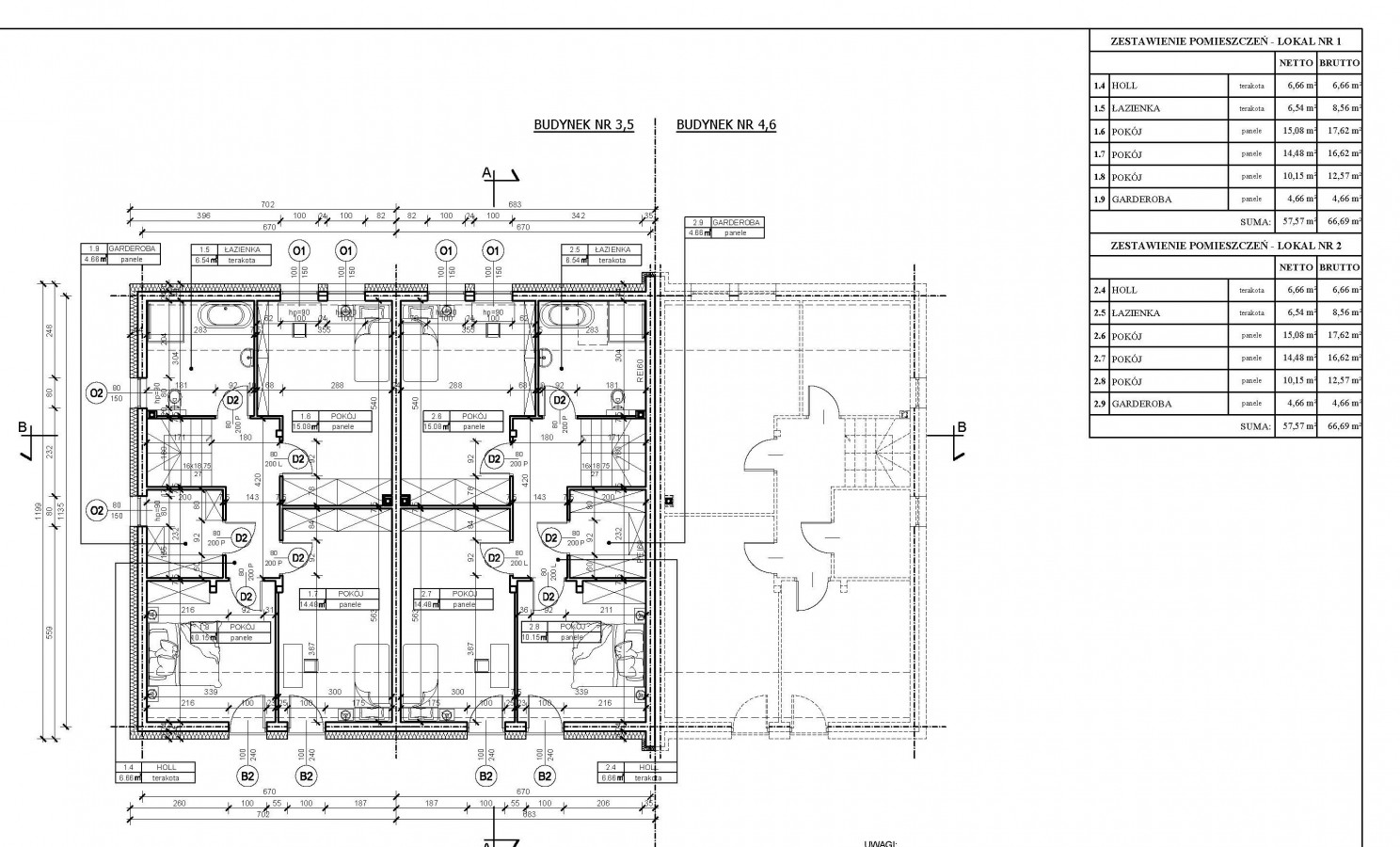 Rzut poddasza lokale A1 i A2