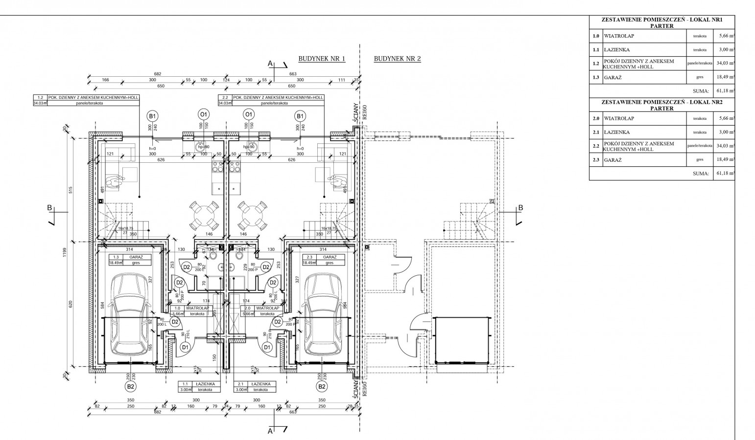W ramach naszej inwestycji w Górach ( ul. Góry 5 ) planujemy zrealizować łącznie ponad 30 lokali, z czego w pierwszym etapie ( sektor A ) zrealizujemy 13 lokali mieszkalnych. Planujemy zrealizować dwa typy lokali, które nieznacznie będą się różnić wielkością. Pierwszy typ będzie miał powierzchnię: 116,80 m2 ( lokale A1 i A2 ) a drugi: 120,62 m2 ( lokale A3 - A9 ). Lokale będą związane z działkami o powierzchni od 192 m2 do 322 m2. Rzuty parteru, poddasza, przekrój oraz elewacje znajdziecie poniżej. Dostępność poszczególnych lokali, ich cena oraz planowany termin rozpoczęcia i zakończenia w tabeli poniżej.